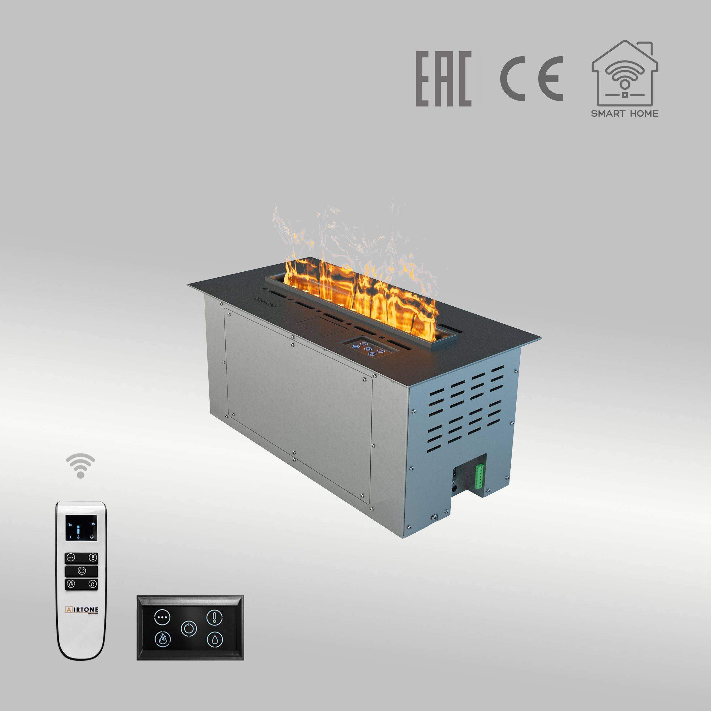- Управление: Сенсорный экран на камине, пульт ДУ или система "Умный дом".